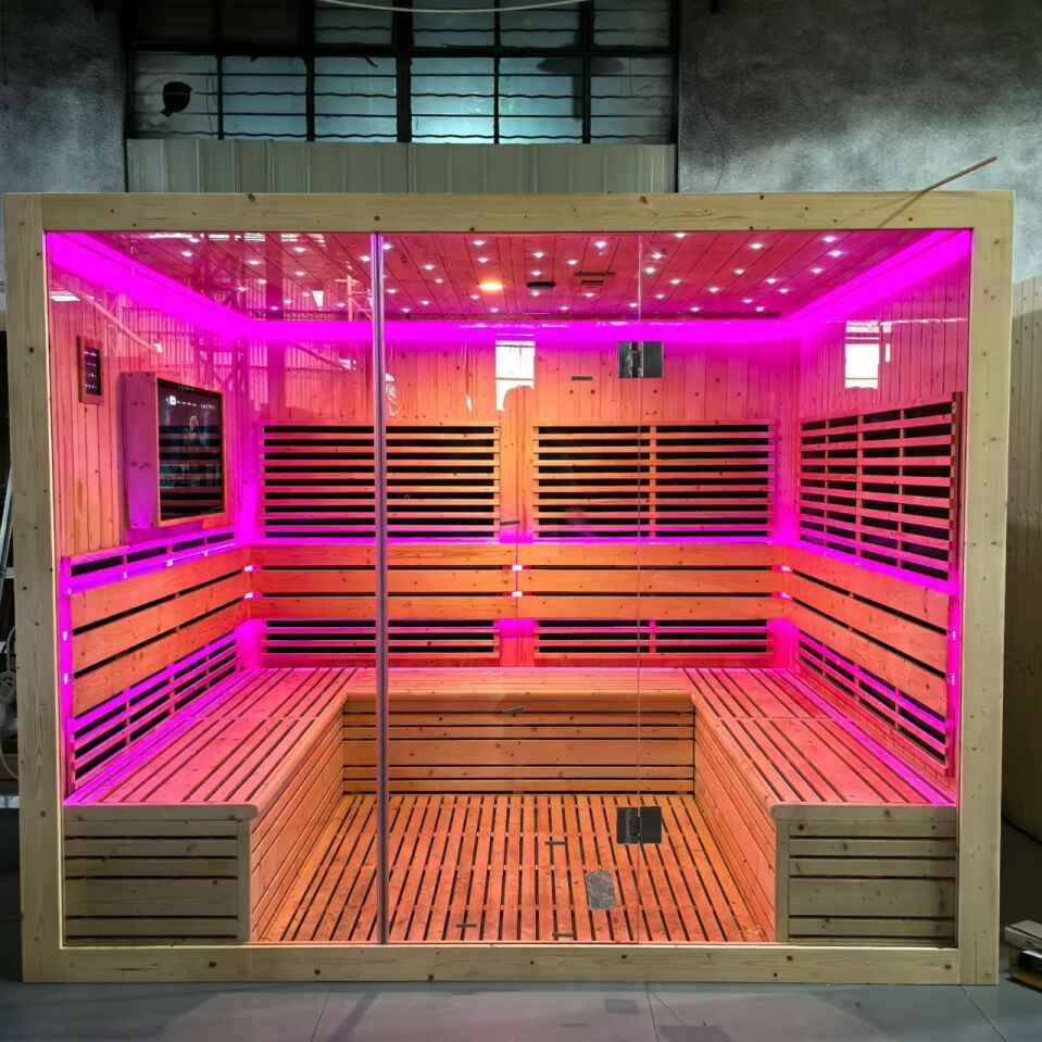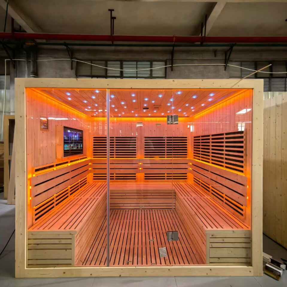 Iščete prostorno in razkošno rešitev savne za skupinsko sprostitev, druženje ali komercialno uporabo? Naša lesena daljinska infrardeča savna za 5–10 oseb z LCD-televizijo je prilagojena vašim potrebam, združuje vrhunske materiale, napredno tehnologijo in dizajn, osredotočen na človeka.
