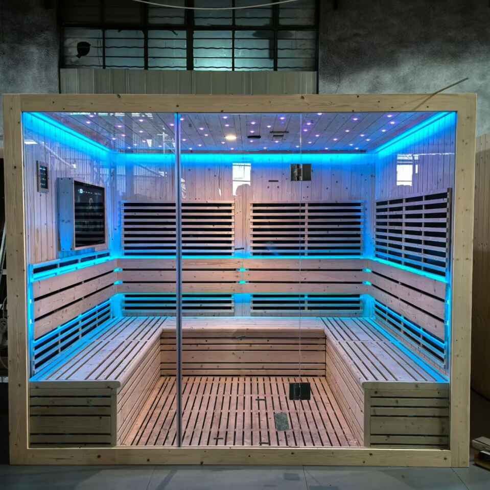 Ta savna, zasnovana za 5–10 uporabnikov, je idealna za družinska srečanja, srečanja prijateljev ali majhne poslovne prostore, kot so zdravilišča in wellness centri. Izdelan iz visokokakovostnega lesa za savno, zagotavlja vzdržljivost, hkrati pa v vaš prostor vnaša naravno, toplo estetiko.