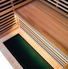 Posebnost savne je dvojni sistem ogrevanja. Daljnji infrardeči grelni elementi omogočajo globoko penetracijo, segrejejo telo od znotraj navzven za spodbujanje krvnega obtoka in razstrupljanje. Pomožni ogrevalni sistem poskrbi za hiter dvig temperature, tako da savna v kratkem času doseže želeno temperaturo. Ta kombinacija ne le poveča učinkovitost ogrevanja, ampak tudi ohranja enakomerno porazdelitev temperature in odpravlja hladne točke.