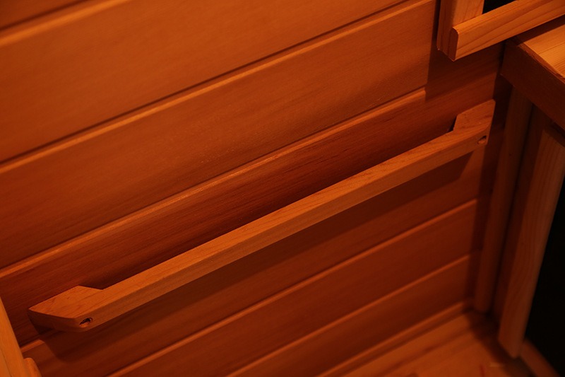 Vir zdravja in obnavljanja vitalnosti: Daleč infrardeče segrevanje prodre globoko v dno kože, spodbuja krvni obtok, pospešuje metabolizem, izganja toksine iz telesa in poveča imunost. Medtem ima sam hemlock les določene antibakterijske lastnosti, kar za vas ustvarja zdravo okolje savne. Med postopkom savne lahko dodate tudi svoja najljubša eterična olja, da pomirite živce in še izboljšate občutek užitka in sprostitve telesa in uma.