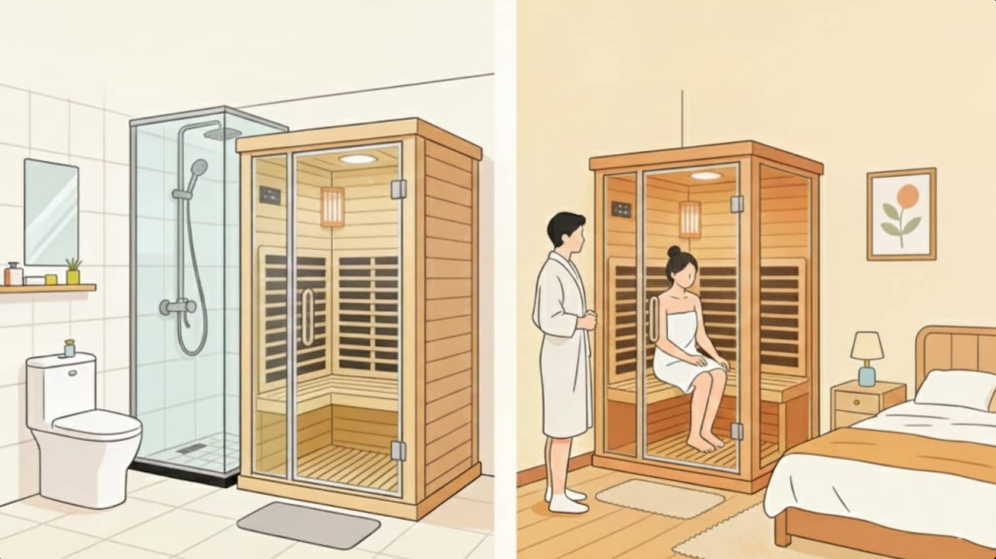 Obe vrsti savn se ne izključujeta in ju je mogoče kombinirati glede na letni čas – poleti uporabljajte infrardeče savne (suhe in nezahtevne, izogibajte se superpoziciji vlažne toplote); pozimi uporabljajte parno savno (toplo in vlažilno). Družine s težavami lahko sprejmejo načrt "delna prenova + prilagodljivo dopolnjevanje": namestite modul parne savne v kopalnico in postavite majhno infrardečo savno v spalnico/balkon, da povečate pokritost zdravstvenih potreb.